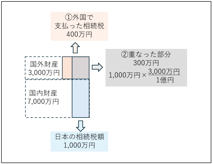 ②日本の相続税額 ×(海外にある財産の金額 ÷ 相続財産全体の金額)