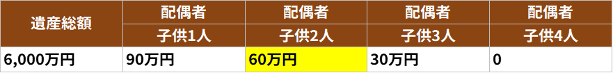 ・遺産総額 6,000万円(1億円▲4,000万円)