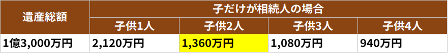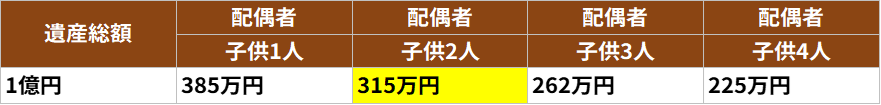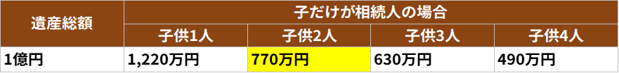 <例>「遺産総額1億円」で「配偶者あり及び子供2人」のケース